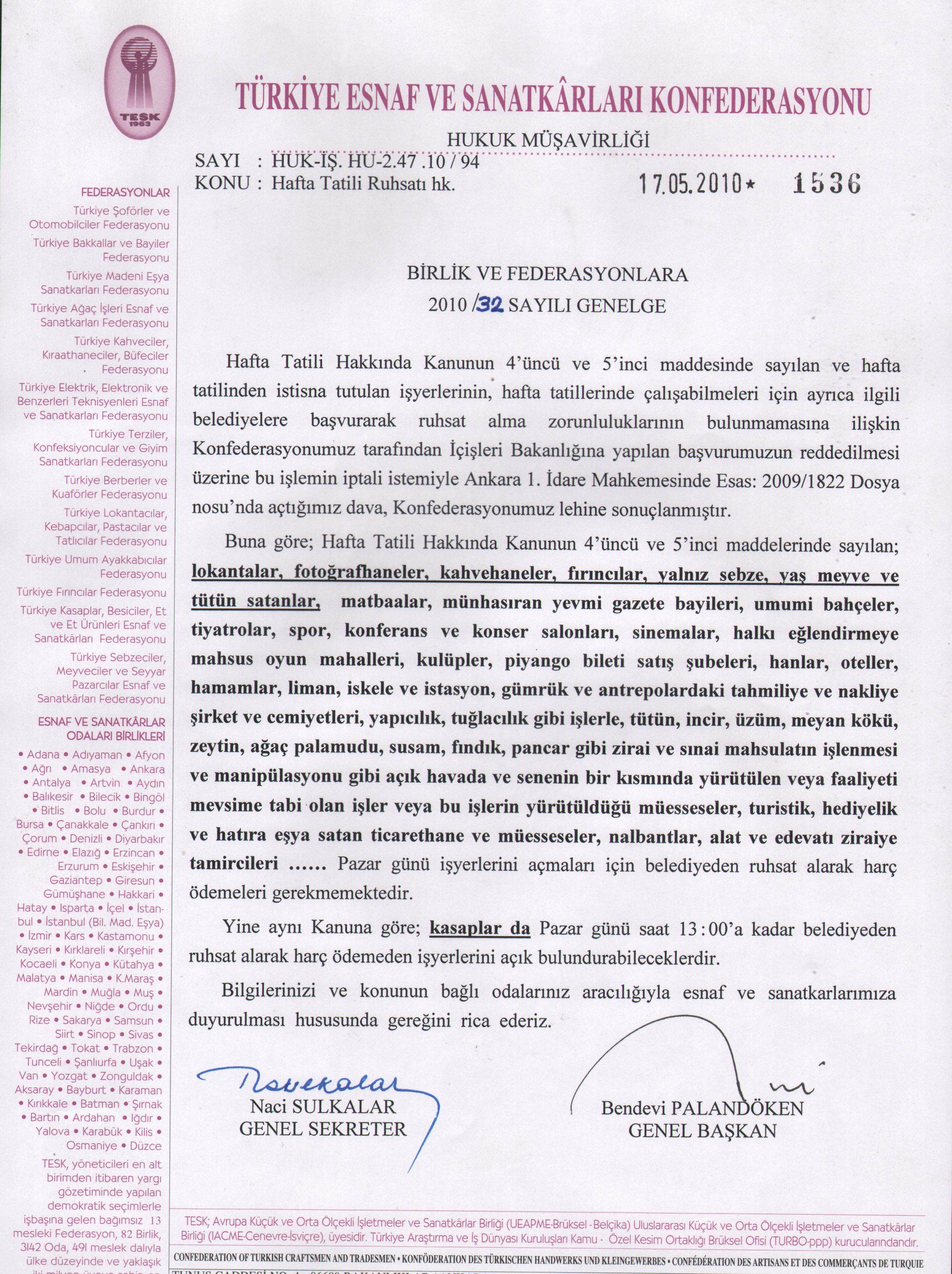 Hafta Tatili Ruhsatı Hk.
